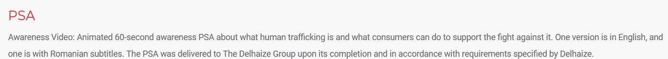 An awareness campaign conducted in partnership with DELHAIZE, extending the European project: a comprehensive corporate toolkit for addressing demand for human trafficking