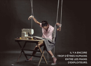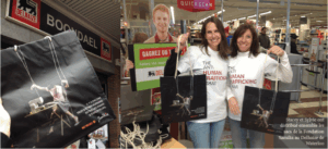 Samilia’s team and its dedicated volunteers distributed 10,000 bags in 10 Delhaize Group stores in Brussels and Walloon Brabant. This action, on October 19, 2015, was part of a consumer awareness program on human trafficking within the framework of a European project. Awareness posters were also placed in all the break rooms of employees in the chain’s 146 stores across Belgium and Luxembourg. The poster was designed by the Brussels-based agency J. Walter Thompson, which generously provided Samilia with four in-house staff to quickly deliver a striking image based on the idea of a puppet whose strings we, the consumers, are all holding.