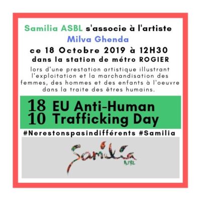Samilia ASBL s’associe à l’artiste Milva Ghenda, ce 18 Octobre 2019 à 12H30, dans la station de métro ROGIER lors d’une prestation artistique illustrant l’exploitation et la marchandisation des femmes, des hommes et des enfants à l’oeuvre dans la traite des êtres humains.
