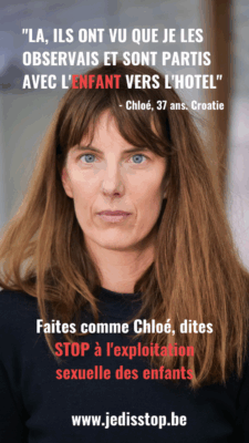 Chacun-e peut s’opposer à l’exploitation sexuelle des mineurs, même à l’étranger.Faites comme Camille, signalez sur www.jedisstop.be.