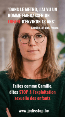Chacun-e peut s’opposer à l’exploitation sexuelle des mineurs, même à l’étranger.Faites comme Camille, signalez sur www.jedisstop.be.