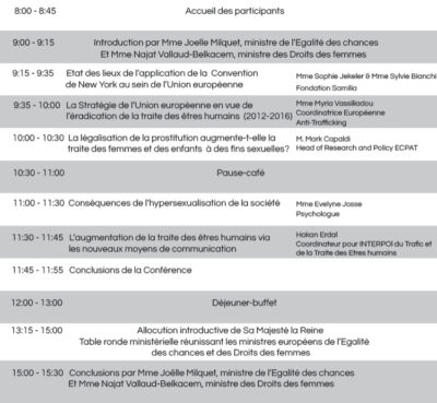 La Fondation Samilia est chargée de l’organisation de la Conférence par les Ministres Joelle Milquet et Minister Najat Vallaud-Belkacem qui souhaitent ardemment mettre les droits des femmes au cœur de l’agenda politique.